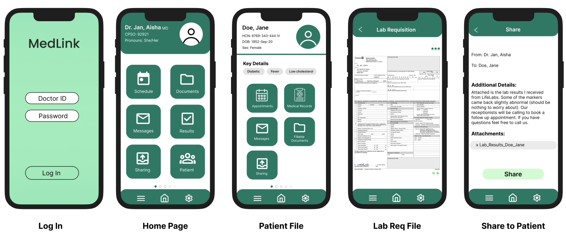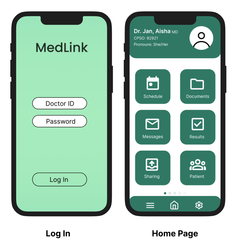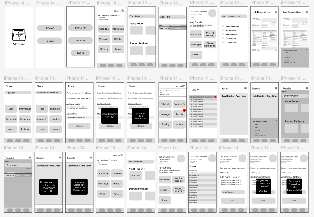 Our initial wireframes laid out the fundamental structure of MedLink:
